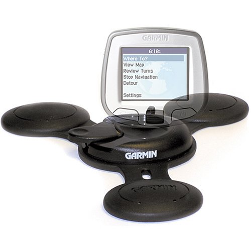 Garmin makes better GPS than mounting kits This kit comes with the friction mounting device and with a hook that can permanently be attached to the windshield, just in case one does not like the kit, I suppose. It does what it says it does, it sits wherever you put it on the dashboard. The dashboard, however, has to be flat for the kit to sit properly. Under the feet there is a thin tissue that keeps the contraption from sliding, which almost came off while I was positioning it on the dashboard, but it is a big improvement from the suction cup that came with my Streetpilot i5, which kept falling from the windshield.What bugs me is that the i5, which is already pretty tiny, it is now further from my eyes and the screen is now harder to read. Also, I can not keep myself from asking what happens to the contraption in case of an accident…maybe if it hits me on the head I will never get lost again?It seems that the only alternative to this device is the glue it for life suction cup, so in this package you have both…