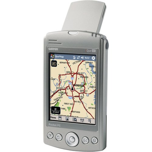 Garmin iQue M5 combines the popular Microsoft Windows Mobile 2003 SE operating system with the dependability of Garmin GPS. Go from the boardroom to the hotel room without stopping for directions. Calendar and contact information is seamlessly integrated with the GPS navigation functions, so the iQue M5 will remind you of appointments, show the location on the map and route you there with detailed, turn-by-turn directions and voice prompts. The mobile office applications will give you the ability to check e-mail and view documents when away from the office, then sync to Outlook when you get back. The iQue M5 includes 64MB of RAM, 64MB of ROM and 15MB of safe storage along with a SecureDigital memory expansion slot, all of which can be used to store map detail and points of interest data from the included MapSource. City Select North America CD-ROM software application provides millions of residential streets and business addresses for all 50 states; nearly every town in the United States and also includes extremely detailed roadmaps for Canada and Puerto Rico. Vibrating alarm Offers Bluetooth wireless technology and IR Infrared communications Ports for headphone and external GPS antenna optional connections Includes RS232 and USB interface connectivity Has a digital-media memory card slot that has SecureDigital SD / SDIO / MMC compatibility Protective flip cover and metal stylus Intel PXA 272 Xscale Processor 416MHz with dedicated 48MHz ARM7 coprocessor 3.5 Diagonal Color TFT LCD with 240×320 QVGA pixel resolution Automotive windshield mount with integrated charger and speaker AC power and charging adapter USB Activesync cradle Unit dimensions – 2.83 W x 5.04 H x 0.75 D / Weight – 5.9 ounces City Select North America mapping software Microsoft Windows Mobile 2003 2nd Edition for PocketPC